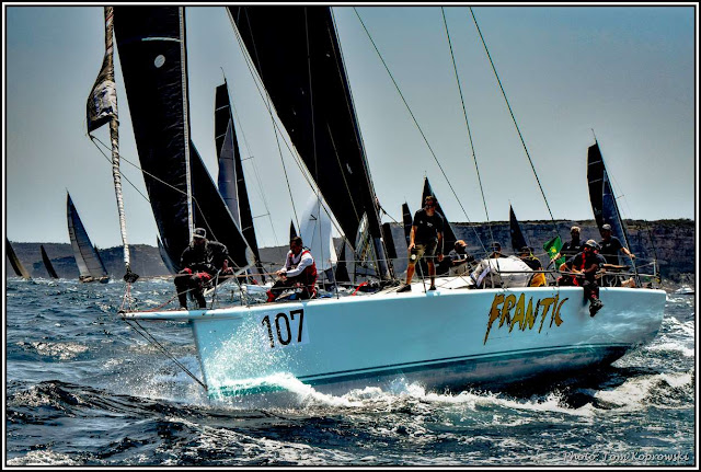 Nasz znany fotograf Tom Koprowski od 25 lat, co roku! wsiada na łajbę! tzn. łódkę prasową - nawet jeśli jest w 10 w skali Beauforta! - i prosto z oceanu robi zdjęcia sydnejskich regat.